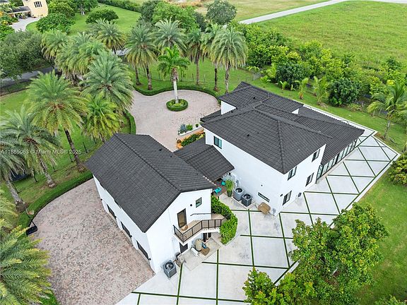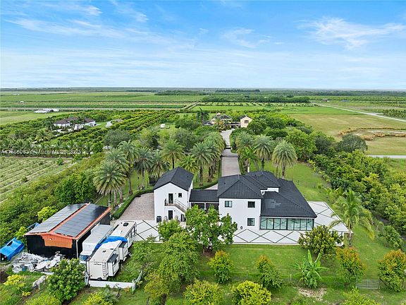 Experience the charm of country living with this stunning 4.6-acre modern estate in Homestead, FL. Built in 2007, this turn-key furnished single-family home offers 3,945 sq. ft. of living space with spacious interiors, high ceilings, and abundant natural light. The property is a true tropical paradise, boasting 623 mature fruit trees producing year-round, including soursop, mango, coconut, jackfruit, sugar apple, star fruit, dragon fruit, sapodilla, papaya, and guava. Featuring a circular driveway, covered parking, and additional vehicle space, it is surrounded by lush greenery for privacy and tranquility. Perfectly blending modern/contemporary design with comfort, and ideally located just minutes from major highways, shopping, and dining. Ready for immediate occupancy.