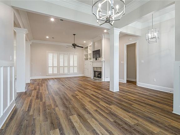 Welcome to this beautifully renovated lakeside gem situated in the peaceful and desirable Oak Alley community, where this spacious 4 bedroom home marries timeless elegance with modern comfort. Inside, enjoy the craftsmanship of triple and double crown molding throughout, complemented by plantation shutters and a bright, airy ambiance. The gourmet kitchen is a chef’s dream, featuring beveled granite countertops, abundant cabinetry, and a premium gas stove. Efficiency meets convenience with Rheem tankless water heaters providing uninterrupted hot water. The master suite is a peaceful retreat boasting generous space, an expansive bath, and a walk-in closet to match. From the screened-in patio, unwind and enjoy breathtaking lake and fountain views, perfect for entertaining or quiet moments at sunset. The home is move-in ready with comprehensive upgrades: all-new flooring backed by a 10-year warranty, new lighting fixtures, a new roof, fresh interior and exterior paint, new toilets, new garage doors, and updated tankless water heaters. This home has been lovingly renovated and awaits its new owners—don’t miss the opportunity to make this lakeside sanctuary your own.