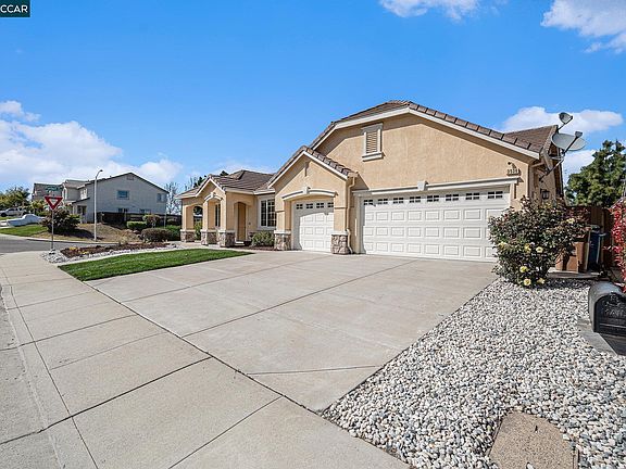 Refined and upgraded single story with entertainers yard is pretty much perfect with its thoughtful design, quality finishes and meticulously planned layout with 3-car garage ideal for hobby’s, toys, bikes. High ceilings throughout add to the spacious feeling and open concept floor plan, including the fully updated kitchen with double ovens, granite countertops and breakfast bar and so much cabinet space for all of your small appliances! You'll love the gas fireplace to cozy up to on chilly nights in the adjoining family room that also seamlessly leads to the fully landscaped yard featuring the California style covered patio and outdoor kitchen for BBQ enthusiasts with outdoor TV for big-game fun providing a fabulous backdrop for gatherings. The primary bedroom offers a spacious private retreat including a well-appointed primary bathroom and its own access to the stunning backyard. Convenient to shopping, freeway, BART, yet private and secluded feeling with the surrounding hills, this one is a rare find.