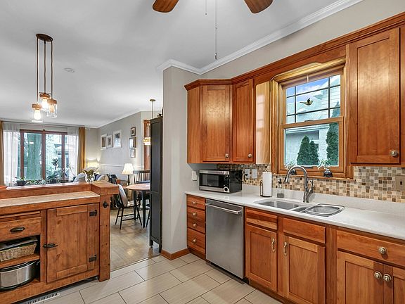 Check out this attractive 3-bed 2-bath Brookfield Farmhouse located on a large 50-ft wide lot in the award-winning RB high school district! The main level offers a bright and comfortable combo living/dining room with beautiful bay windows and an entryway coat closet; an updated kitchen featuring Quartz countertops, tall Maple cabinets with crown molding, and stainless steel appliances; a good-sized 1st-floor bedroom with a wall-to-wall closet, a full bathroom, plus a spacious screened back porch - perfect for relaxing or entertaining! Upstairs you'll find two additional bedrooms, an updated 2nd full bathroom, a cozy dormer nook, and extra storage spaces. Downstairs is a full basement with exterior access providing ample space for your storage needs. Other great features include elegant crown molding, 9-ft ceilings, and new industrial hardwood flooring on the 1st floor. Outside enjoy a huge fenced backyard with a playset (2020), a fantastic 14' X 10' screened back porch with a wall-mounted flat-screen TV, and a detached 2-car garage. Other recent improvements include a new LG gas stove and gas line (2020), a new high-end Bosh dishwasher (2021), new gutters (2022), 2nd-floor bedrooms painted (2021), and more! This home is within walking distance of two Metra train stations, and close to the middle school, public library, restaurants, and shops! Enjoy easy access to major highways and proximity to Chicago's Midway airport, world-famous Brookfield Zoo, forest preserves, and other great surrounding communities. Sold as is. Schedule your showing today! Don't miss this opportunity to make a wonderful house in a fun and family-friendly neighborhood, your home!