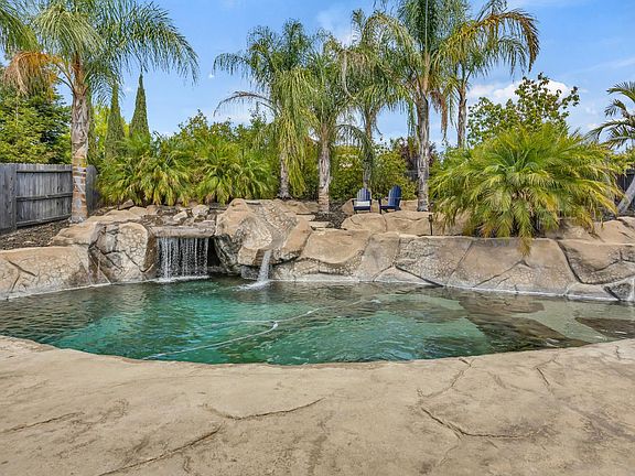 A rare offering - never before on market, this Blackstone retreat blends elegance with resort living. Designed to live like a single story, the primary suite rests on the lower level, while the upstairs has been reimagined to include 4 bedrooms and a tranquil study alcove that inspires creative focus. A custom ADU (2021) features a private office and outdoor bath. The backyard unfolds as a private paradise that features an incredible saltwater pool with a zero beach entry, swim-up bar, surreal grotto, waterfall features, natural waterslide, and spa, framed by custom lighting for those special evenings. An outdoor kitchen with expansive bar seating sets the stage for gatherings, surrounded by mature palms and tropical landscape promotes elevated living. Sited on a .27-ACRE homesite, this staycation lifestyle invites effortless comfort and entertainment. Built with energy efficient features that include a 38-panel SOLAR SYSTEM, EV charger, tankless water heater and more. Residents of Blackstone enjoy exclusive access to the clubhouse, fitness center, pools, trails, parks, and 24-hr security. Top-rated schools include Valley View Charter K-8, just a short walk away. This ultimate staycation embodies pure abundance.