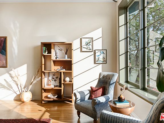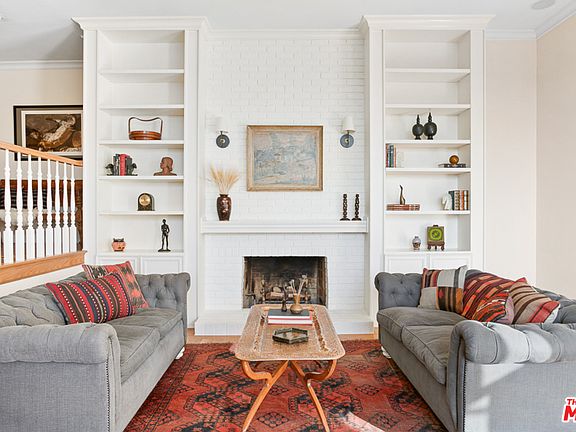 Chic Monterey Colonial with sweeping views and a quiet location North of the Blvd, just moments to the Village and trailheads of Griffith Park. Enter the private retreat via an elegant foyer to an expansive living room with double height ceilings & grand fireplace flanked by two-story high built-in's. Large French casement windows showcase stunning views of DTLA's skyline from the living room and five other rooms of the home. Remodeled, eat-in kitchen boasts granite counters, bar with wine fridge and arcadia doors to the yard. Large den and formal dining room, ideal for entertaining complete the main level. Upstairs features four oversized bedrooms, three bathrooms; two En Suite. Luxurious Master Retreat features French doors to a patio on one side & large balcony on the other + fireplace, walk-in closet and En Suite master bath. The perfect sanctuary. Enjoy starry nights and sunny days from the serene & private backyard. A unique home with easy care yard for the ultimate LA lifestyle.