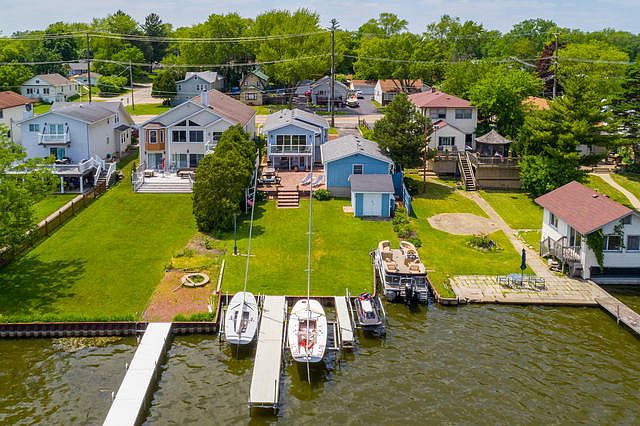 "Chain O' Lakes" lakefront escape! Bring your sailboat, pontoon boat, fishing or ski boat, kayaks and paddle boards. There's room for all of them at this charming home with 50 feet of well-maintained shoreline with steel sea wall on beautiful Long Lake. Coming from the City? It's less than a 90-minute ride on Metra from downtown Chicago to the Ingleside Metra stop, just a mile from this well-positioned Long Lake home. Coming from the North Shore or western suburbs? It's less than an hour drive. Long Lake is a motorized lake with access to the Chain through a lock system. You can go out, but no one else other than Long Lake homeowners can come in! So is more private and serene. This lakeside home has open floor plan, fireplace, and a wall of windows and balcony for enjoying the views out over the expanse of Long Lake. Newly painted and decorated for lakeside living, current owners invested in a number of updates, including a complete remodel of lower level walk-out. They opened the space up and installed wet bar with custom reclaimed wood, new shelving and cabinets, new recessed lighting, new windows, and porcelain tile floors. Perfect for entertaining. Adjoining cozy alcove functions as 2nd bedroom to host extended family or visiting guests in their own private space with full bath on lower level. Other updates include remodeled master bedroom on main floor, new AC system, and exterior landscaping. 2.5 car garage large enough to store two sailboats, jet ski and car. With 1,763 sq. ft. of finished space, large brick paver patio for entertaining, and plenty of shoreline for all your water toys, you'll love lake living on Long Lake!