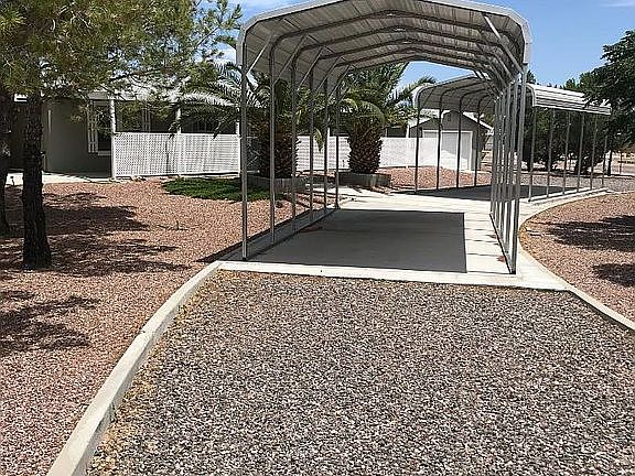 For Sale 3 bedrooms 2 Baths Manufacture Home set on a block permanent foundation for easy financing. Will pay up to $500 for a one-year Home Warranty at the close of Escrow. New 40-gallon electric Hot Water Heater put in on Nov. 24th, 2023. New side by side refrigerator put in on 11/01/2024. The white side by side refrigerator in the photos was replaced with a new one in 2024. I will change that photo showing the newer one that is in place now. Stainless Steel side by side. Split floor plan. Nice size corner lot completely fenced; 5 foot high.. 3 driveway gates. Pave roads. The whole home is All Electric. So no propane gas needed. Has city water. 20x24 Garage with garage door opener and 2 remotes. Plus there's two 12x24 Metal Carports that were put in 2018 on cement slabs. Both carports are high enough to fit most travel trailers under. More than enough parking with the two circle driveways. Plenty of room to add another garage or two. Both Bathrooms have showers, and no Tubs. Ceiling fans. All 3 Bedrooms have walk-in closets. Inside Laundry. Appliances stay. NOTE: New Roof was put on the home November 2020.. Nice views from all sides. 76 Gas station & mini mart just 2 blocks away. 17 miles. Need to make an appointment for viewing. 60 to 90 day escrow might be needed to close or 45 days. But could be less depending on the close of escrow on what we are buying.