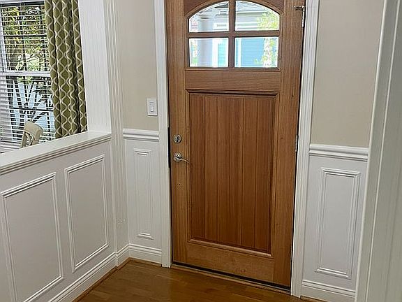 The spacious primary bedroom and luxurious walk-in closet offers the perfect place to escape for rest and relaxation. The primary bath features a water closet, large soaking tub, separate walk-in shower, and dual sink vanities. Wainscoting adds elegance and charm to the foyer and hallway.