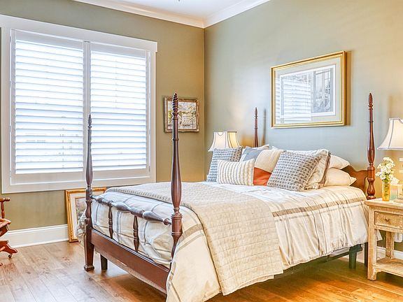 Beautiful almost new construction in a gated 55+ community. Soaring ceilings 10'+. Hardwood throughout. Oversized baseboards, casings, and crown. Great layout for entertaining, including large serving island in kitchen and covered back porch. Each bedroom has its own private bath. Oversized garage. Post-construction add-ons include plantation shutters, security system, irrigation system, and oversized gutters. Neighborhood pool and clubhouse to be completed by early summer.