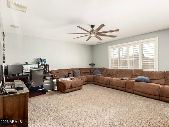 So many great features for those that love space! Start with extra long driveway, RV parking area, RV gate with slab parking behind gate. Large 2 car garage w 220 for welder or E charger, lots of extra outlets, inc under the eaves, door to the backyard. The front porch is perfect to sit and relax. Inside you'll enjoy the updated features of dual pane windows, white shutters, fans thru out, smart t-stat on 4 ton AC (new in 2018), Evap cooling, gas water heater (2016). Big open kitchen has a high breakfast bar, durable concrete countertops, double ovens, tons of cabinets w soft close and slide outs. Open to family room or formal dining area, and a beautiful brick two way fireplace splits the wall to the spacious step down family room, perfect for huge tv! All 4 bdrms are good size w fans and ample closet space.Laundry room has gas to dryer, door to large backyard with a great covered patio and misting system, above ground spa, fenced diving depth (no board) pool w huge shade overhead. Plaster was redone in 2018 along with new pump, variable speed pool pump in 2022. Solar activated in 2019 with only about 9 years left of payments! New 250 amp electric panel in 2018. Such a cool house, you won't want to miss this!