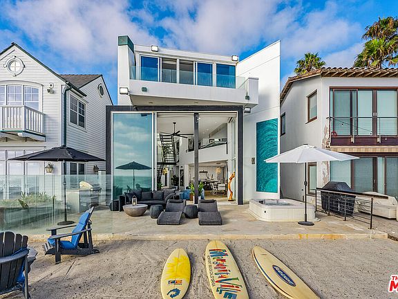 Seller is open to seller financing or a trade!!! Indulge in the BEST LOCATION ON BEACH ROAD at this rare oceanfront opportunity, where crashing whitewater, panoramic views and breathtaking sunsets define your everyday experience. Located within Dana Point's exclusive guard-gated Beach Road enclave, built on caissons and protected by a double seawall, this modern residence offers visionary design by award-winning Lehrer Architects, maximizing panoramic ocean views from every floor.This one-of-a-kind three-level residence features open, light-filled living spaces where contoured walls and geometric forms reach toward soaring two-story ceilings, creating an unparalleled sense of grandeur. Remote-controlled skylights and art-quality fixtures enhance the interior ambiance, while 16' slide-away glass doors seamlessly connect the indoors with the beachfront deck, built-up sand pad, and steps leading to the coastline beyond.The main level harmoniously blends living, dining, and kitchen areas, perfect for entertaining or simply soaking in the ocean vistas. The sophisticated kitchen boasts chic cabinetry, lighted glass uppers, a substantial island with seating, and top-tier stainless appliances, including a built-in wine fridge and storage.Ascending to the second floor, a loft-style study with walls of bookshelves and ocean views offers an inspiring work-from-home environment. A spacious bonus room on this level provides flexibility for a media room, fitness studio, or additional living area. The top-level primary suite is a sanctuary of luxury, with floor-to-ceiling windows framing breathtaking ocean views. Step out onto your private deck to savor the sea breeze, or retreat inside to enjoy the fireplace, soaking tub, expansive shower, and dressing-room closet that create a spa-like atmosphere.Outside, the on-the-sand deck with a built-in BBQ and spa invites you to embrace the quintessential California lifestyle. Spend your days lounging by the shore and your evenings under the stars, serenaded by the sound of crashing waves. The property includes a two-car enclosed garage, parking for 10 vehicles, and an additional enclosed bicycle storage area.With no HOA and its prime position on Beach Road, this oceanfront home offers a unique opportunity to live your coastal dream in an unparalleled location.