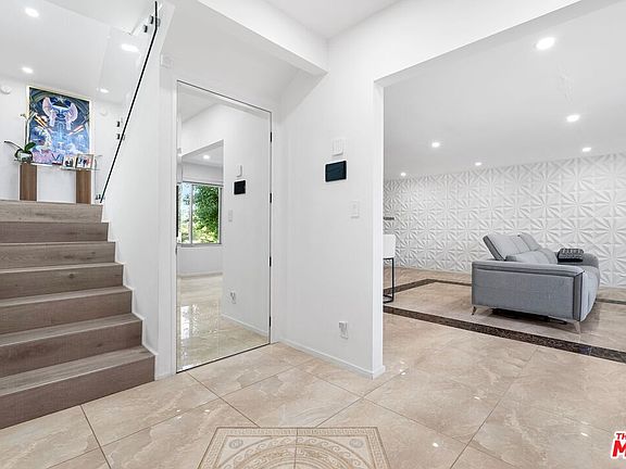 Discover this fully remodeled luxury estate in the prestigious Royal Woods neighborhood of Sherman Oaks, offering 3,716 sqft of elegant living on a 14,112 sqft lot, just minutes from the 405 and 101 freeways and vibrant Ventura Blvd. Completed in 2023, the home boasts top-of-the-line upgrades including new stucco, electrical, plumbing, flooring, and custom bathrooms. Inside, you'll find soaring ceilings, expansive floor-to-ceiling windows, and a European-style kitchen with stainless steel appliances. The entertainment room features a custom-built bar, while the upstairs showcases a cozy family room with a fireplace, a formal dining area, and a luxurious master suite with a beautifully remodeled bathroom. The second level also offers two spacious bedrooms and two stylishly renovated bathrooms. Outdoor space is perfect for entertaining, with a waterfall, koi pond, covered patio, modern pergola with full barbeque kitchen, and breathtaking valley views from the wrap-around front patio. Additional highlights include a glass walls gym, office, full house water softening system, in-ceiling sound system throughout the house, and a serene atmosphere near hiking trails and shopping, making this a rare blend of modern elegance and tranquility. Showings are by appointment only.