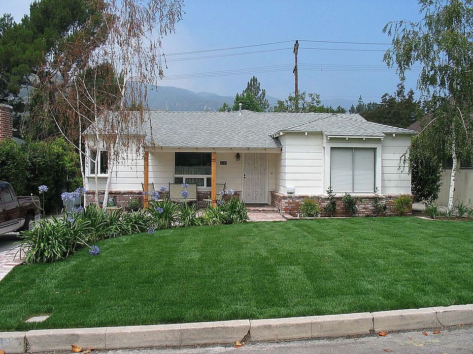 Single story with custom kitchen, pecan cabinets, granite countertops, stainless steel appliances, stained glass fronts. Solid oak flooring. Master bath has porcelain tile, dual vanity, full shower and jacuzzi tub w/ skylight. Guest bath has full shower, vanity and skylight. Extensive covered walkways and porches, with brick planters and walkways. Fountain at rear of back yard.