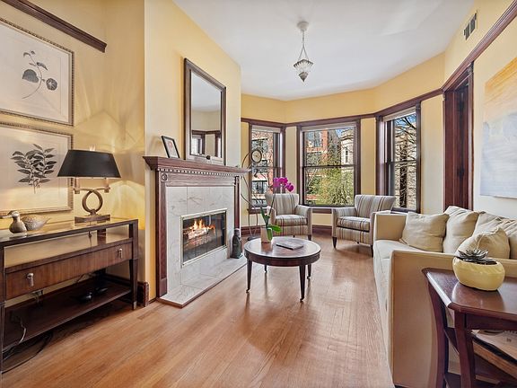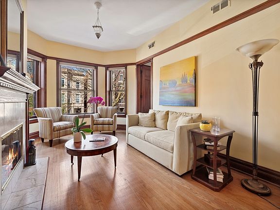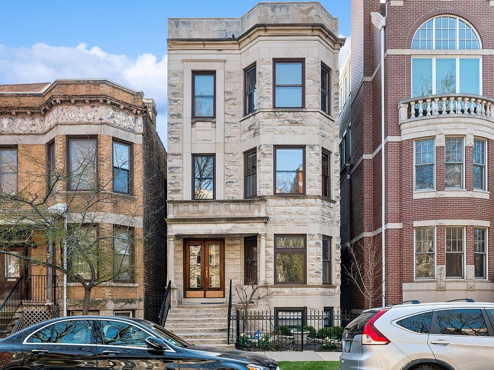 Gorgeous light filled 2-bedroom + den condo in a stately Lakeview Greystone building. This conveniently located home in Lake view offers all of the modern conveniences and a spacious design. Large living room with bay windows with a real wood burning fireplace. The adjacent dining room offers two large windows and a built-in hutch. Galley kitchen with glass tile back splash, stone countertops, Island and SS Appliances. The kitchen opens to the den or TV room for easy relaxing. The primary bedroom offers a spacious built out closet. Updated stone bathroom with walk-in shower and linen closet. Laundry included in the condo. Enjoy a large deck overlooking the serene back yard. Indoor garage parking off alley. Amazing location steps to many shopping and dining options. Well maintained building and great reserves.