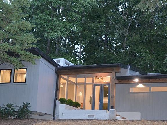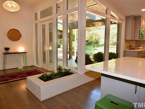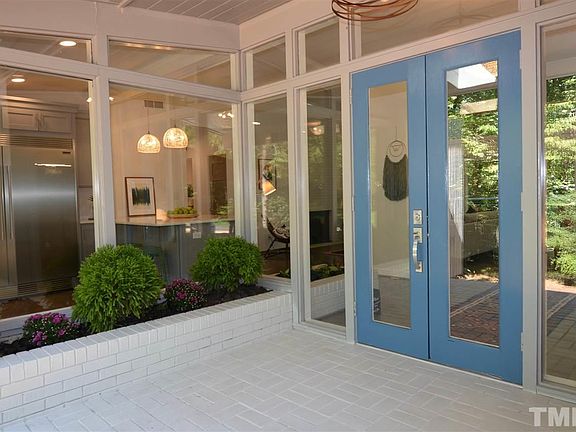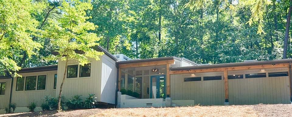 Fully Renovated: Excellent mid-century modern design home by William Van Eaton Sprinkle that is perfectly situated on the private 1.3 acre lot in Durham's Hope Valley. Huge windows, open floor plan and fabulous deck allow absolute indoor-outdoor integration. Vaulted ceilings in the open floor plan features hardwood floors, fully updated wood paneling and complete kitchen renovation. Two wood fireplaces will create the ambiance and warmth on winter nights. The new master suite has a walk-in closet & shower
