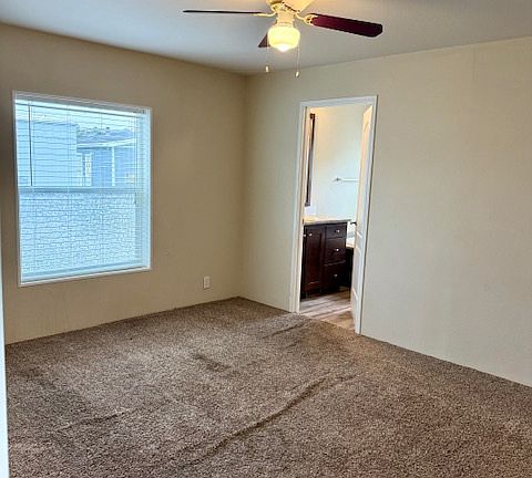 One-owner mobile home located in the Sunrise Meadows Trailer Park. This is a 2-bedroom, 2-bath home; the original floor plan had 3 bedrooms, so there is potential to convert to its original layout. The master bedroom is generously sized, and the master bathroom features a separate garden tub and a standing shower. A very large shed is included with the property, providing ample storage space.