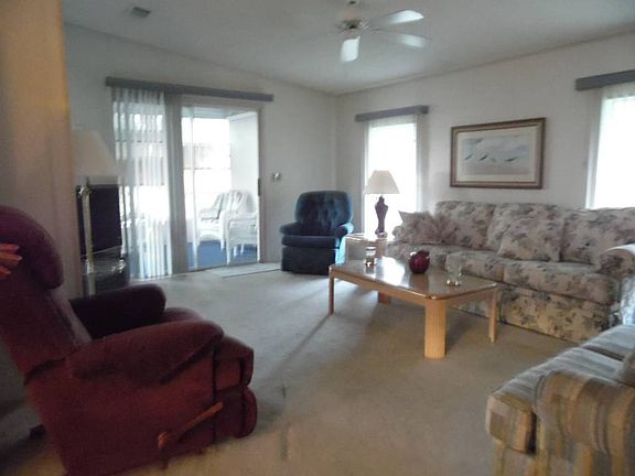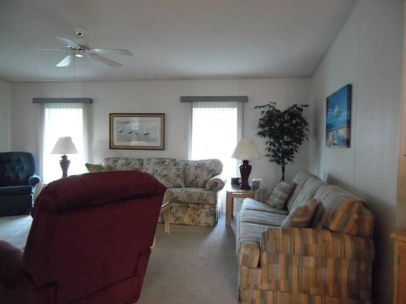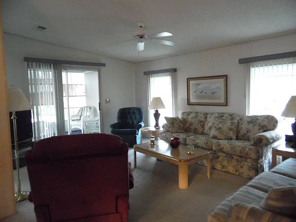 Brilliant-elegant home in a gated, 55 plus active retirement community. This lovely home has many features, a big bright beautiful kitchen with white cabinetry, large living room, dining room and screen in lanai, spacious master bedroom with large closet, on suite includes his and hers sinks, newer plumbing. A highly desired laundry room located inside the home. There is a newer rubber roof and A/C has had recent maintenance. This house comes fully furnished and is move in ready.