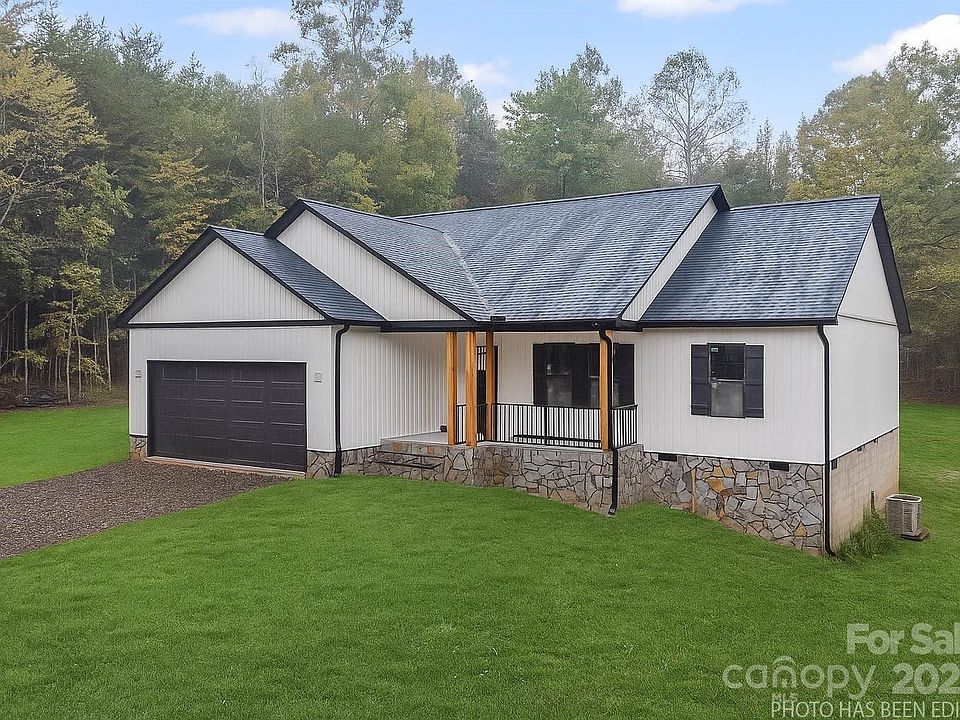Discover modern comfort with timeless farmhouse style in this almost complete, brand-new home. Conveniently located less than 15 minutes from town. Tucked away on a private lot, this property offers the perfect balance of peaceful living and easy access to amenities. Step inside to a bright, open concept living area, featuring a vaulted ceiling that creates an airy, inviting space. The split-bedroom floor plan ensures privacy, with a spacious primary suite that includes a walk-in closet and a bathroom with a double vanity. Enjoy the convenience of a designated laundry room, plus a walk-in crawl space ideal for extra storage. Relax on the welcoming front porch or unwind on the tucked-away back porch overlooking your private yard. Home is under construction, estimated completion end of October.