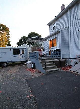 Vinyl sided Colonial with enclosed front porch and rear patio area. This property has a finished attic that could be a 4th bedroom. Detached 1 car garage. Sold As-Is