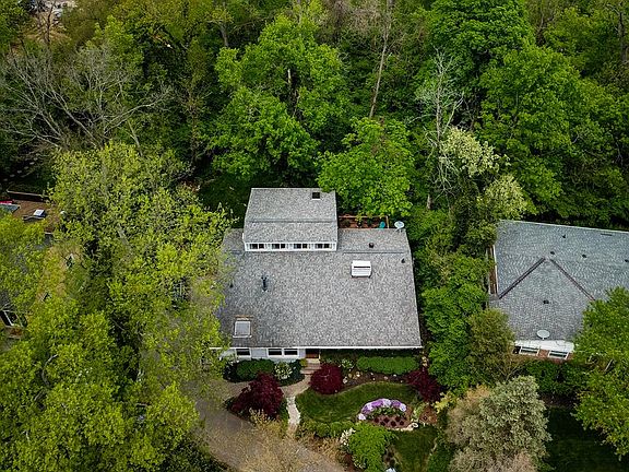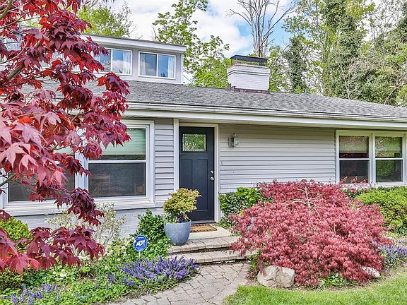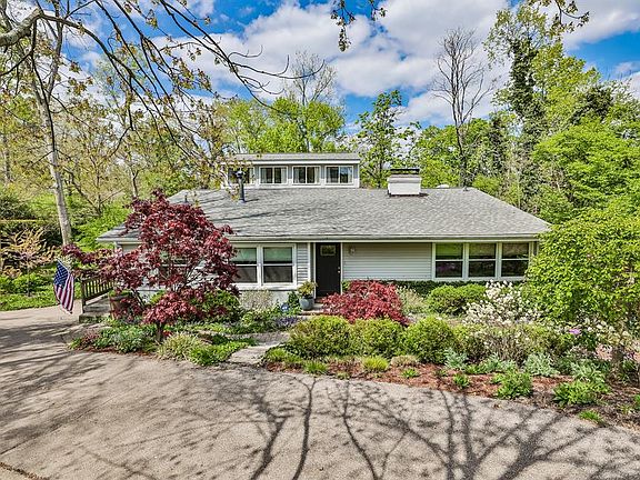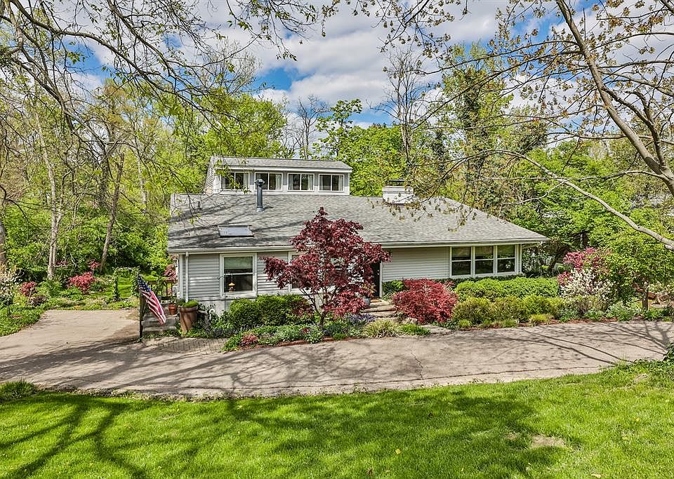 Beautifully renovated mid-century contemporary tri level in a delightfully private wooded setting. Open & spacious! Great room w/hrdwd flrs & exquisite stone fireplace. Beautiful newer kitchen, baths, windows, sliding drs, shades, AC, roof, landscaping and more. Deck and hardwood flrs refinished. Interior/Exterior painted in 2020.