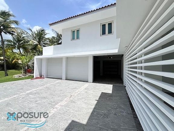This modern 5-bedroom, 6.5-bathroom home in Dorado Beach East offers 5,073 sq. ft. of living space on a 1,200 m² lot, featuring a 3-car carport, infinity pool with heated Jacuzzi, and a private 2-story guesthouse with its own bedroom, living area, and full bath. The open-concept layout is filled with natural light, highlighted by double-height ceilings, large glass doors, and a welcoming water feature at the entrance. The remodeled kitchen includes Sub-Zero and Wolf appliances and flows into the dining and family rooms. The spacious master suite features a walk-in closet, ensuite bath, and dedicated workspace. Additional features include a 40KW generator and a 1,000-gallon water cistern. The outdoor area is perfect for entertaining, with a covered terrace and fully equipped outdoor kitchen. Located within the gated Dorado Beach East community, residents enjoy access to resort amenities via golf cart (membership required). Private showings by appointment only..