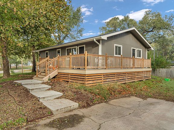 Lovely 2 bedroom ranch in Rossville, KS. Enjoy a long list of updates within the last 12 months; windows, bathroom vanity, light fixtures, flooring, appliances, wrap around deck and more! The third bedroom was converted to an oversized laundry room on the main floor. The basement foundation was poured in 2006, and the house was moved from the slab below. It has all the systems from a 2006 build but some of the framing and windows were used form the old structure. The full unfinished basement has plumbing stubbed and an egress window!