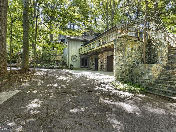 You'll love coming home to this retreat-like property! Welcome to this contemporary style home with endless unique features making it one-of-a-kind. Tucked off of the road down a private lane, this wooded 2.7 acre lot affords loads of privacy and pristine views throughout the seasons. Head up a commanding turned stone staircase to the wrap-around deck and enter into the dramatic living room. This large room features vaulted ceilings, stone fireplace, wide-plank wood floors and custom windows to take in the views. Also enjoy access to the sprawling raised deck. Pass through pocket doors into the heart of the home. This wide-open 2-story great room is perfect for gatherings with large stone fireplace. The massive dining area can fit a large table and opens to the kitchen with high-end appliances, wet bar with wine fridge & pantry/laundry area. Also access the covered screened porch with quiet views. The main floor primary suite features a large bedroom and his and hers full en-suites. The main level also has access to a beautiful conservatory with unobstructed views through endless windows as well as a built-in spa for ultimate relaxation. Head up the spiral staircase to find an open air sitting area as well as 2 bedrooms and guest bath. Head down the spiral stairs to the finished lower level family room with stone fireplace, built-in cabinetry and new elevator to main level. Also find access to the oversized 3-car garage with additional storage. This custom built home is convenient to downtown Kennett Square, West Chester, Wilmington, Philadelphia and all the amenities that those cities have to offer.