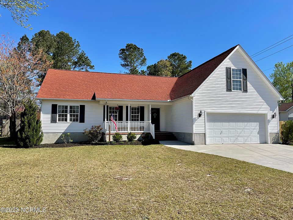 Move-in Ready, beautiful 4 bed 2 bath home in the sought after Tucker Creek subdivision. Only 3 minutes from MCAS Cherry Point and halfway between Crystal Coast Beaches and Historic Downtown New Bern. This home features a modern open floor plan with vaulted ceiling in the living room, cozy gas fireplace, sleek stainless kitchen appliances, as well as stylish new laminate flooring and plush new carpet throughout. The spacious master bedroom features a walk-in closet and attached bathroom. Two additional bedrooms share a full-sized bathroom. The bonus room is the 4th bedroom. The sizable backyard comes with a new 8x12 shed for additional storage and a privacy fence. HOA is optional, $75 for boat ramp access. You don't want to miss this one. Call for a private showing today!
