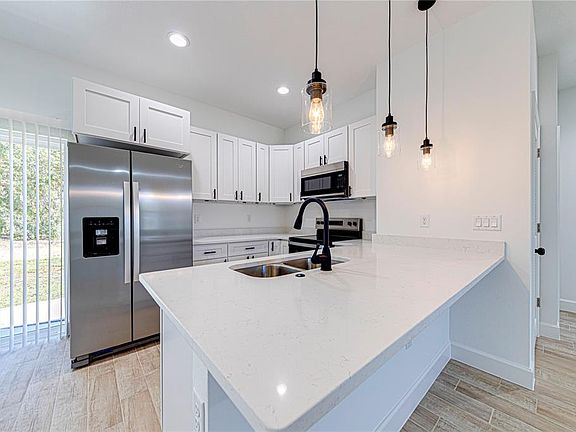 Conveniently located between Ocala and Orlando, with easy access to major highways. Perfect opportunity to build your dream home, retirement residence, or investment property at an affordable price in a growing area of Central Florida. Enjoy the peaceful surroundings of nature while being close to world-class golf courses, restaurants, hospitals, and events from The Villages community. This beautifully designed 3-bedroom, 2-bathroom home offers 1,292 sq. ft. of living space. The open-concept floor plan features high ceilings, elegant wood-look tile flooring throughout, and abundant natural light that enhances the modern interior. The kitchen is equipped with stainless steel appliances, quartz countertops, and a spacious island perfect for cooking or entertaining. The master suite includes a walk-in closet and a private bathroom with dual vanities and a beautifully tiled walk-in shower. Enjoy peace and privacy with no rear neighbors and a large open backyard — ideal for relaxing or outdoor gatherings. Located just minutes from Lake Weir, shopping, and dining options, this home offers the perfect blend of comfort, style, and convenience. Move-in ready and waiting for its first owner!