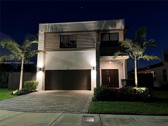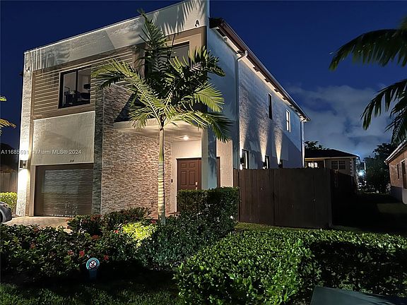 This 5-bedroom, 4.5-bath single-family home is located in the new community of Via Ventura, just minutes from Aventura. Built in 2019, this gated community 24/7 security, a clubhouse with a pool, gym, playground, and other amenities. The home features a modern design, 2,833 sq ft of living space, and a total of 3,340 sq ft, with a 2-car garage. The large backyard (50' x 48') is perfect for a pool, spa, and outdoor kitchen. Inside, you'll find modern grey porcelain flooring on the 1st floor, premium vinyl flooring on the 2nd floor, and laminate wood stairs. The home is upgraded with Impact Hurricane Proof Windows and Slider Doors, and a kitchen with quartz countertops. This rare 5-bedroom