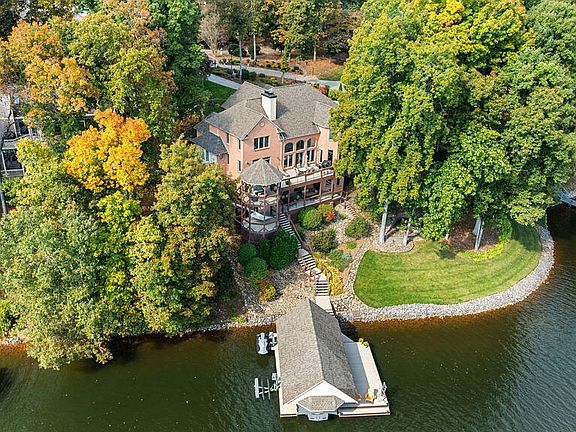 INCREDIBLE Lakefront ALL BRICK Home! The Grand Arch Entrance says Welcome Home in Style. Within, the Soaring Ceilings and Circle Top Windows Give an Immediate View of the Lake presenting the WOW Factor! The Great Room features a floor to Ceiling Stone Fireplace. Formal Dining with Tray Ceiling and Crown Molding. The Kitchen has Custom Cherry Cabinetry, Tumbled Marble Backsplash, Stainless Steel Appliances, Double Ovens, Gas Range with Down Draft, Thermador Coffee Bar, Center Island and Granite Counters. Whole House Water Filter System and Reverse Osmosis in Kitchen. Breakfast room overlooking the Lake leads to Screened Porch. Primary BR Suite has Gorgeous Views of the Lake, Completely Renovated Bath with Curb less Tile Shower, Retro Soaker Tub, Large Double Sink Vanity and Private WC. Spacious Primary Closet with Mirrored Doors. Upstairs, a Second Primary Suite, w Spacious Bath and Closet. 3rd Bedroom with Bath and Bonus/Bedroom with Bath. Partially Finished Basement provides plenty of additional space for crafts, an Entertainment Center with Cozy Brick Fireplace, and Game table of choice. The Gym has a Rubber Gym Floor Covering, and yes great Views of the Lake. A massive Covered Deck has Dry Below System with Gutters and plenty of space for your outdoor furniture. 8 Person Caldera Hot Tub. Follow the recently painted deck and Flagstone path to the Fire Pit area for a relaxing Cocktail or Smores event. There are 2 large Gazebos where you can hang out in a hammock or spend the afternoon reading. Great for entertaining. Other features are: Genuine Hardwood Floors,2 Laundry Rooms, 2 Large Unfinished Storage rooms in lower level, 2 Jet Ski Lifts, 10,000 lb Lift on Dock, Rainbird Irrigation System, New Furnace (2025) on Main, New (2025) HVAC on Upper. Your lake front oasis awaits! Note: Buyer to confirm Sq Ft.