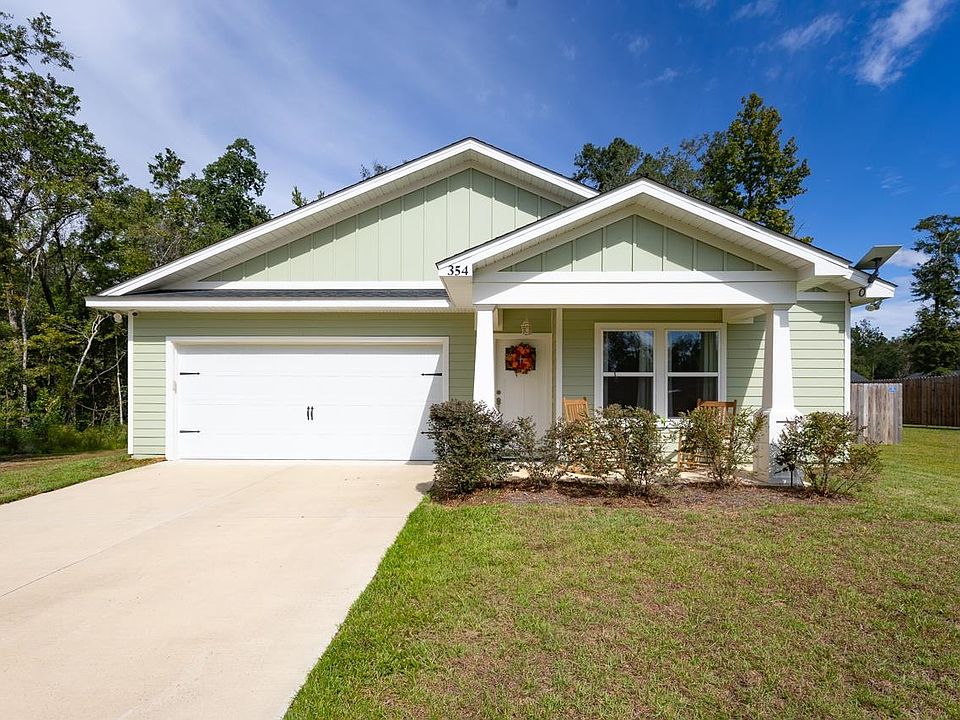 2024 construction, shows like brand new home on large .68 acre lot, wooded buffer adds privacy. Open floor plan, kitchen with granite tops, counter seating and dining overlooks living room. Split bedroom plan , large master suite, walk in shower. 2 car garage, back screen porch overlooking privacy fenced backyard.