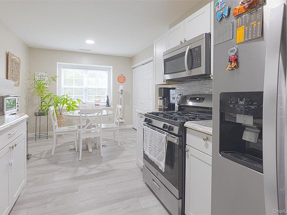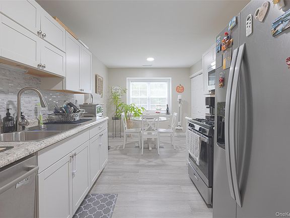 Welcome home to this beautiful END unit townhouse in Windridge (section 2B). Tons of updates have been done to this lovely home. The roof & gutters have all been replaced on these units. Interior has new white & bright kitchen cabinetry, gorgeous lighting, counter tops, stainless steel appliances. The hallway bathroom is updated. New recess lighting throughout! Newer flooring including laminate flooring. Hot water heater just 3 years old. Master primary bedroom has a private balcony at rear of home overlooking beautiful water fountain/pond and has NEWLY updated en suite bathroom w/full walk in closet & built in custom California shelving system. Huge living room and dining room with gas fireplace. Sliders leading to private NEWLY UPDATED PAVED yard surrounded by pine trees. Relax on your patio with perfect serenity. The garage has a new remote key system. Community features include a pool, basketball courts, playground, and ample parking for guests. Chester town taxes, with Monroe Woodbury schools, this doesn't get any better! This beauty won't last. It's meticulous and ready to move right in!