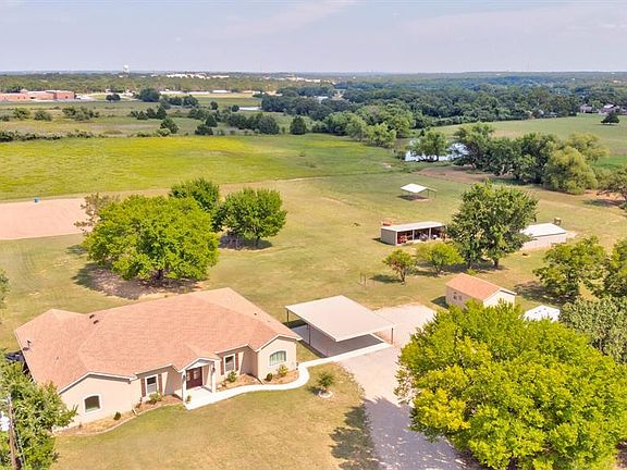 WELCOME HOME to this secluded horse property only 30 minutes from downtown Fort Worth. The open concept, high ceiling house, with a huge kitchen and living room area is just waiting to host large family gatherings. This 6+ beautiful acre property has a pecan grove, new 2 stall horse shelter, hay and equipment shelter, pasture shelter, round pen, chicken coop (with chickens), and a 3000 gallon water tank. This is a must see! Elementary schools are K-4 Cross Timber, 5-6 Hoover. Roof will be replaced before closing.