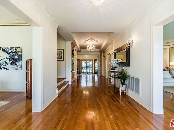 Enter this Georgian Colonial home through the expansive front yard. This large corner lot in prime Windsor Square has a great traditional floor plan. Five spacious bedrooms; four bedrooms upstairs, each with it's own bathroom plus a maid's quarters downstairs. The opulent living room with fireplace is designed for large scale entertaining with family room adjacent. The formal dining room has many of the old world charms of the 1920s. Each room has an abundance of windows which filter in natural light. Extra storage in basement with a secret wine cellar! The gated entrance to the garage is on 4th Street with plenty of space on the driveway for additional parking. The bonus studio is perfect for an office, guest home or movie theatre and has its own bathroom with shower. The park-like backyard sits on an expansive lot of over 14,000 sqft. Walking distance to shops and restaurants in Larchmont Village. Located in the coveted Third Street School district.
