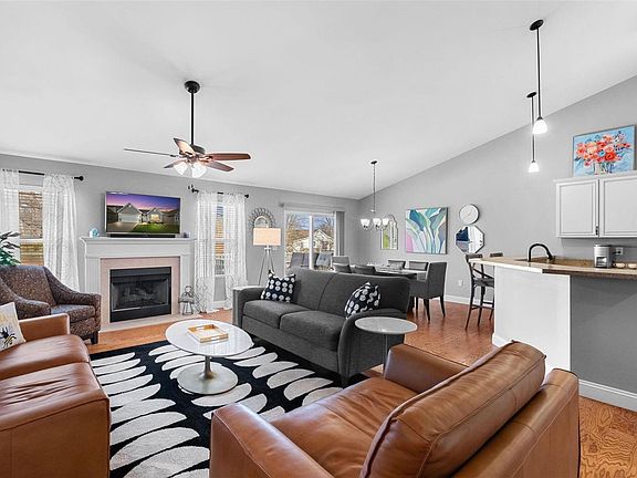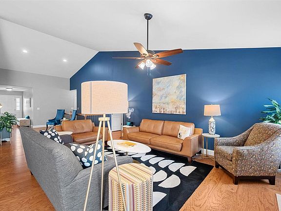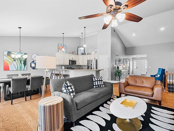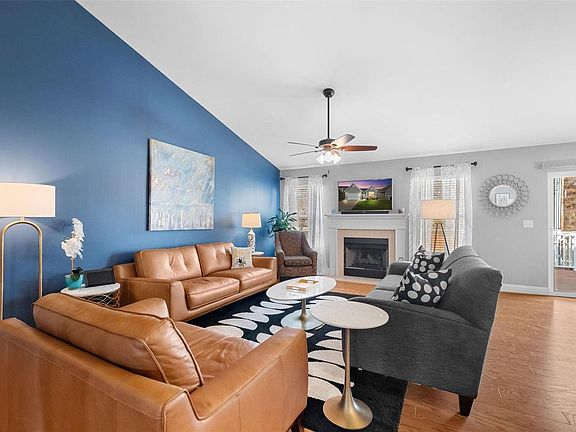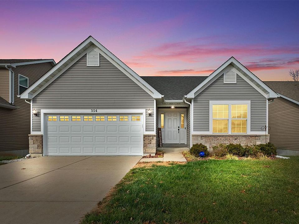Welcome to this meticulously maintained 7-year-young ranch home boasting an open floor plan w/ soaring ceilings, 3 beds, 3 full baths, & 2,882 total sq ft. Step inside to the entry foyer which leads to a spacious Great Room featuring gas f/p & gorgeous engineered hardwood floors. The kitchen is a chef's dream, complete w/ granite counters, stylish backsplash, breakfast bar w/ ample seating, custom cabinets, new Bosch stainless appliances, & pantry. The dining area opens to composite deck w/ stairs leading to level/fenced-in backyard. The primary suite features coffered ceiling, ensuite bath w/ double sinks, separate tub/shower, & large WIC. 2 add'l beds, updated hall bath, & laundry rm complete the ML. The finished walk-out LL offers endless possibilities w/ space for movie/workout/game/office/entertainment areas, 3rd full bath, & storage. Add'l features: Panel Doors, 5" baseboards, New Roof (Coming Soon) & Conveniently located near 141 & I-44. Welcome home!