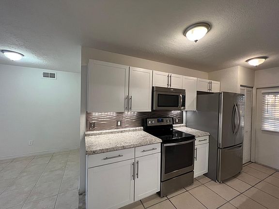 Clean, updated 3/2 townhome, tile throughout, brand new A/C, stainless and black appliances, less than 10 minutes to big box shopping and restaurants, minutes from Lake Eustis and Lake Harris. Walk in shower in master with 2 closets. Large living and dining area with new lighting and ceiling fans. Convenient location for commuting to major highways. Covered screened patio. Move in ready. Washer dryer not included. Renter is responsible for last months' rent upon signing. Renter is responsible for water and electric. No smoking indoors. Lease term 1 year. Maintenance less than $100 is tenants' responsibility.
