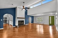 - Ceiling Fan(s), Crown Molding, Eating Space In Kitchen, High Ceilings, Living Room/Dining Room Combo, Open Floorplan, Solid Surface Counters, Solid Wood Cabinets, Split Bedroom, Thermostat, Walk-In Closet(s)