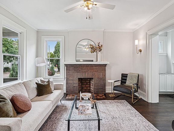 This beautifully restored Historic home with added modern touches! High end finishes with a lot of architectural charm. Featuring 3 elegant decorative fireplaces that add character. The original hardwood floors gleam with a natural finish, while the modern kitchen is updated with contemporary appliances. On the third floor, a cozy loft space can be used as a bedroom/office. New roof, Thermopane insulated windows. Much more!