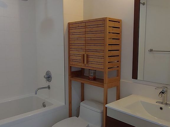 The master suite (13x22) fits a California king-sized bed with ample room to spare and features a large (6x5) walk-in closet with custom cabinetry. The private bathroom features slate tiling through-out and a deep soaking tub. The second bedroom has plenty of closet space and can fit a queen (even a king) size bed. The dine-in kitchen includes a dishwasher, microwave, fridge and a gas stove. No detail has been overlooked in this apartment. There are large floor-to-ceiling windows allowing for plenty of sunlight and fresh air. Southern exposure. Abundant closet space: 5 large closets in total, including a huge walk-in-closet in the master bedroom. Washers and dryers on each floor.