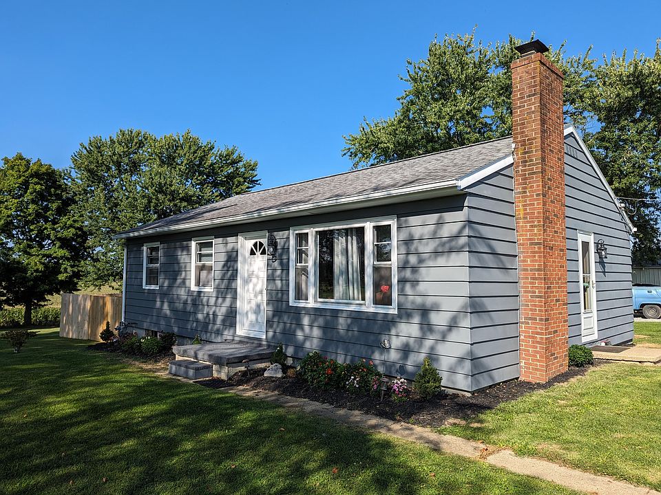 Enjoy country living and privacy in this rustic ranch with 3 bdrms, 1.5 baths, and full basement on 1.4 acres just minutes from Rt 33! Eat-in kitchen, family room, refinished hard wood floors, updated bathrooms, fresh paint inside and out, and extra living in the partially finished basement. Long gravel driveway with parking and turnaround. 24 ft x 35 ft pole barn/workshop with electric to store your equipment, tools and vehicles. This large and manageable parcel has plenty of room for your garden, pets, kids and hobbies! Delicious and ample well-water.