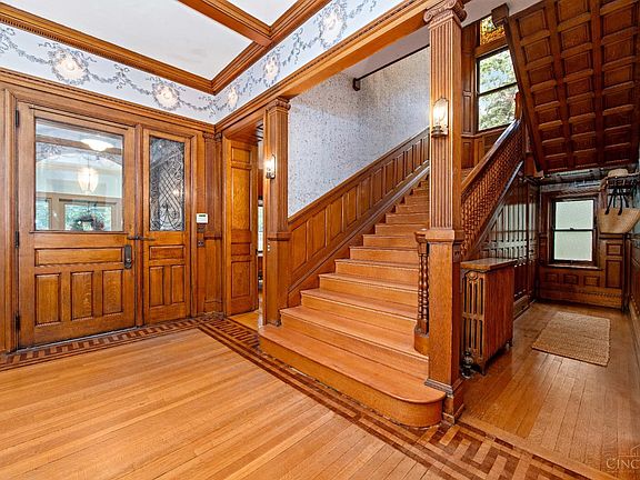 Welcome to Glen Terrace, the stately home designed by acclaimed Cincinnati architect James W. McLaughlin for Clifton Barron, Sir Alfred Goshorn: A Timeless Piece of History. Step into a world of elegance and Romanesque design in this magnificent home, where incredible original millwork greets you at every turn. Beautiful original stained glass from famed 3rd street studios along with a stunning marble spiral staircase leads you to the skylight gallery. With 7 spacious bedrooms and 6 luxurious baths, this residence boasts over 8,500 sf of grand yet practical living space, perfect for both entertaining and family living. Situated on over 2 lush acres within the City, the property features a 3-car attached and 2-car detached garage, offering ample space for vehicles and hobbies. This exceptional residence combines historic charm & relevance with modern convenience, making it a rare opportunity to own a slice of history. Don't miss your chance to experience the grandeur of Glen Terrace!
