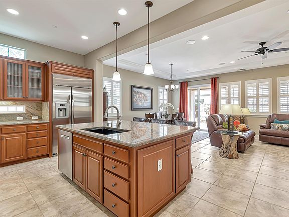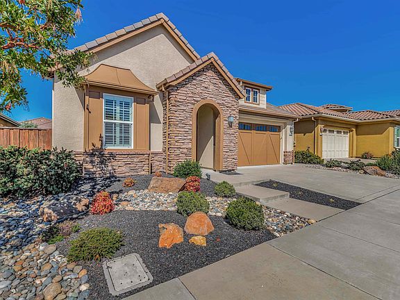 You will find luxury resort living at its best in the 55 and up community. The community features a clubhouse, gym, library, card room, outdoor barbeque, bocce ball courts, pool and spa. This gated community offers security to homeowners. This contemporary style home is all on one level, features include a tile roof, solar panels, a tankless water heater, and a two car garage. The kitchen boasts granite counters, a breakfast bar, pantry and stainless steel appliances. The great room has a fireplace and tile floors. The spacious primary bedroom suite includes custom window coverings and carpeting. In addition , it includes a large walk-in closet with custom cabinets. Don't miss this highly upgraded home built by Ponderosa home builders. The office could be used as a 3rd Bedroom.