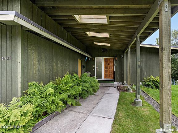 Experience all that Alaska has to offer with this truly remarkable home. This special property has all the feels of a luxury hillside retreat yet perched perfectly in the coveted College Village UMED District. This Home is perfect for a growing family, professional couple or Airbnb, possibilities are endless. Step inside this stunning 2140 sq. ft. home featuring 3 bedrooms/2 bath 2 car garageNestled on a gorgeous 14,613 sq. ft. lot, it is evident that the owners took pride of this property and have taken exceptional care of this urban modern retro vibe that's sure to be a crowd pleaser. These are the homes that dreams are made of with grand feelings of privacy and open green spaces. Home backs up to a lovely greenbelt and Lake, giving you that home in the country experience yet still close to all that Anchorage has to offer. Imagine curling up by the natural stone fireplace reading a book and peering out the huge living room windows, or drinking your morning coffee from the fantastic back deck. The main floor has great traffic flow with a generous kitchen that goes into a lovely dining room and open living room. One spacious bedroom, full bath and laundry are also on this level. As you head downstairs you will find two additional bedrooms, one full bath, and a capacious sized family room perfect for a home office, workout room, game room or media room. Step outside from your walk out basement to enjoy gardening in your very own greenhouse perfect for all your plants, spring starters or wintering plants. The yard boasts plenty of room for kids to play, friends to enjoy a family bbq, a rousing game of corn hole or just enjoy the picturesque Alaskan outdoors.