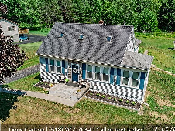 Move-in ready three bedroom home in Schalmont schools on 1.49 acre lot! Updated kitchen w/ double oven, large pantry, and breakfast bar. Family room w/wood stove and vaulted ceiling w/exposed beam. Elevated deck next to family room. 1st floor master bedroom and bathroom w/additional electric heater. Separate dining room with connected office space. Two upstairs bedrooms w/skylights and deep closets, including one master. Finished basement with walk-out doors to patio for outdoor seating. Basement includes recreation room, wet bar and ample storage. Oversized two car detached garage w/ work space and overhead storage. Shed in backyard. Updated within five years: sump pump, gas dryer, gas tankless water heater, gas furnace, septic pump, leech field, and tank. Central A/C serviced in June.