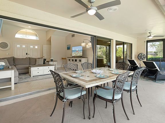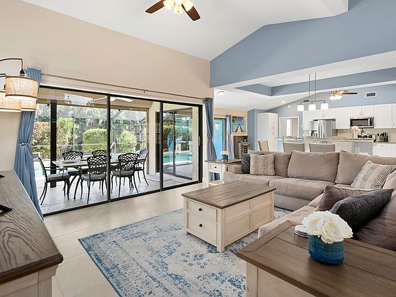 Large family room with high ceilings makes for a large, open feeling and is great for entertaining and enjoying a family movie or game night. Outdoors awaits a tropical retreat where you can take a swim in the sparkling pool, soak up the Florida sun, and enjoy drinks and laughs with family and closest friends.