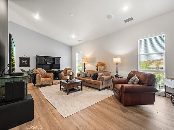 Seriously, NO OTHER home in Corona is like this unique, CUSTOM BUILT, and Intelligently Designed 4 Bed/4 bath home!— Although located in the Orchard Glen community, there's No Mello-Roos and NO HOA for this specific property. All 4 LARGE Bedrooms are located on the main level. This home offers Smart Home Features and modern amenities nestled near the scenic skyline hiking trail and the beautiful hillsides of the Cleveland National Forest. This beautiful home offers the perfect blend of modern luxury and natural beauty. The dining room and living room showcase vaulted ceilings, built-in ceiling speakers, and stunning double doors leading to the back patio. The large 6-foot windows fill the space with natural light, creating a bright and open ambiance. Chef’s delight - the kitchen is equipped with ample cabinets, built-in appliances, 5-burner gas cooktop, a sleek hood, and the large island features barstool seating, perfect for casual dining. Another highlight is the spacious master suite, complete with a private balcony showcasing breathtaking mountain views, a shower, a separate bathtub, double sinks, and a generous walk-in closet. Two additional LARGE bedrooms are located beside the master, sharing a convenient Jack-and-Jill full bathroom. A fourth bedroom, located just off the kitchen, provides extra privacy and comes with its own full bath, making it ideal for guests. This home also offers smart features, including hardwired Ring cameras and select smart switches that integrate seamlessly with Alexa. Stay comfortable year-round with dual HVAC units and enjoy energy efficiency with 22 PAID OFF solar panels and a tankless water heater. Additional highlights include 25' deep garage with an extra-wide door and EV Level 2 Charger, a butler’s pantry, whole-house fire suppression system for enhanced safety, and 7-zone irrigation system with high-efficiency driplines, remotely controlled via Wi-Fi from anywhere. Nearby Skyline Drive Trailhead for Hadagor Canyon and Skinsuit Trails range from easy to difficult, and a breathtaking view of the Pacific Ocean from the summit. Conveniently located near the 91/241/15 freeways. CHECK OUT VIDEO & 3D TOUR! Welcome Home!
