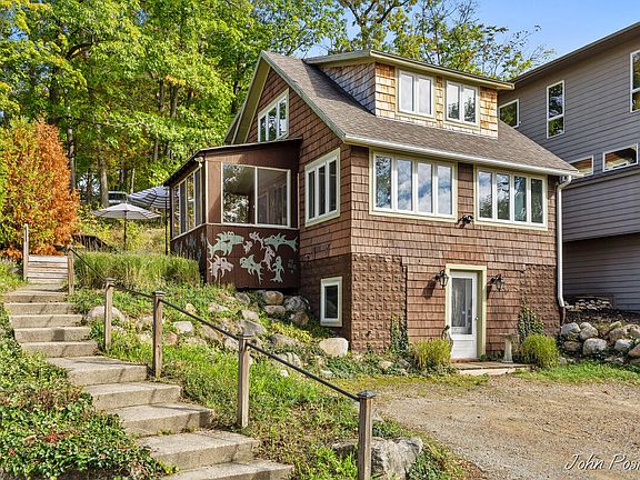 REEDS LAKE: This year-round cottage is situated in a great neighborhood association on the East end of Reeds Lake. Part of Woodcliff Beach Assoc. featuring park, sandy beach, play area, & association dock. Grand Rapids Township Property across the street, approximately 80 feet of frontage where you can dock your boat in front of the house. Price includes 2 lots - see survey. Home has been gutted & completed remodeled in 2003. Value is in the land. Enjoy the peaceful views from the 3-season sun porch with amazing sunsets!