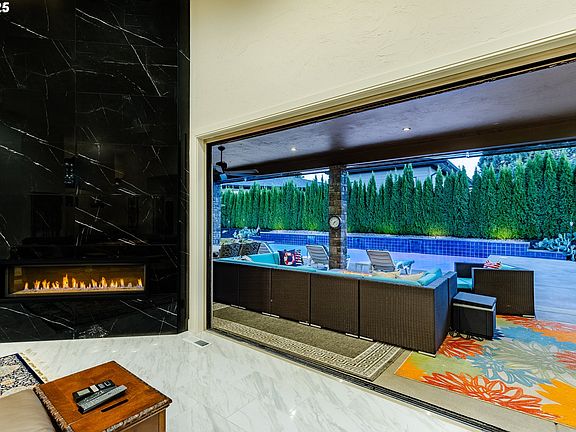 Rv garageGas fireplaceSaltwater poolHot tubWine coolerPanoramic glass doorsExpansive bonus room