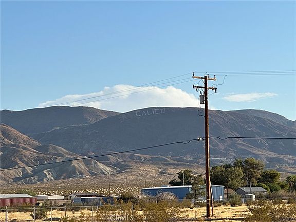 "This unique building lot boasts a deep well onsite, plunging 300 feet down and capable of pumping approximately 12 gallons per minute. Imagine building your dream home nestled at the foot of the stunning Calico Mountains. Spanning 2.4 acres, the property is conveniently located just 10 miles from Super Walmart, a mere 3 minutes from I-15, and a quick 10-minute drive from I-40. Calico Ghost Town is less than three minutes away, and the famous Eddie World is just five minutes by car.