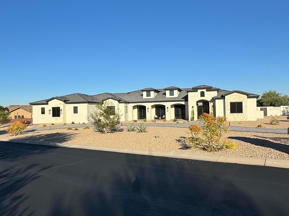 Nestled within the exclusive gates of Santo Vallarta, this one-of-a-kind custom estate is a rare hidden gem—an ultra-private luxury retreat on a premium corner lot just under an acre, framed by panoramic mountain views and breathtaking sunrises and sunsets that create a true desert sanctuary. Crafted with exceptional detail and timeless sophistication, this residence offers 4 bedrooms plus an office that easily functions as a 5th bedroom, 4.5 bathrooms, a spacious game room with wet bar, and multiple fireplaces, all wrapped in a warm, refined ambiance. A grand entry with custom iron and glass doors opens to a beautifully curated floor plan and interior featuring wood cabinetry, double kitchen islands, quartz countertops throughout, high-end Wolf appliances, a butler's pantry, and an expansive walk-in pantry. Walls of double sliders connect the interior to a resort-caliber backyard designed for ultimate relaxation and entertaining, complete with a heated pool and spa, putting green, extensive travertine decking, a large covered patio with fireplace, custom wood beams, and lush professional landscaping that enhances the home's serene, getaway-like atmosphere. Additional highlights include motorized custom shades, designer lighting, custom-tiled showers, a circular driveway, oversized 3-car garage with epoxy flooring and custom cabinetry, photo-cell exterior lighting, and the ability to expand with a future RV garage or casita. A rare offering of privacy, luxury, and tranquilitythis stunning estate is truly a destination of its own within one of Queen Creek's most coveted luxury enclaves.