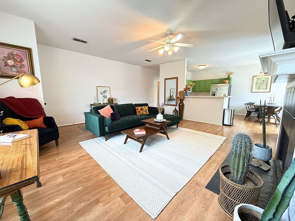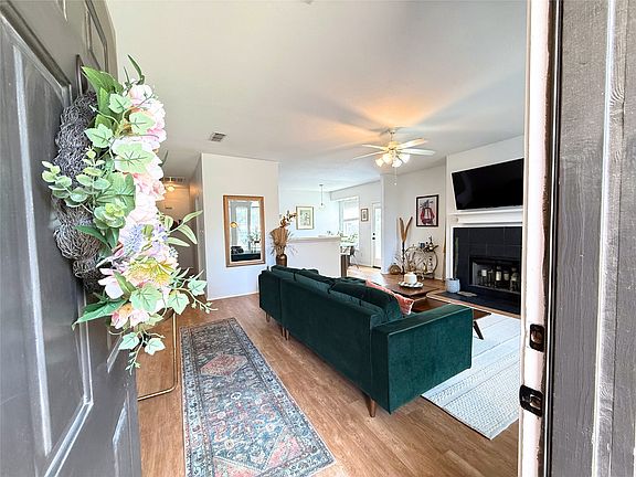Inside, you'll find an open floor plan with a cozy wood-burning fireplace, a combination of ceramic tile, and a bright kitchen featuring an electric range, built-in microwave, and dishwasher. The primary suite includes a private bath and ample closet space. The home also includes central HVAC, ceiling fans, and a 2-car attached garage.Perfectly situated in the Northwest ISD, this home is within walking distance of local schools and close to shopping, dining, and major highways. It's ideal for families, first-time buyers, or anyone looking for a move-in-ready home in a welcoming community.