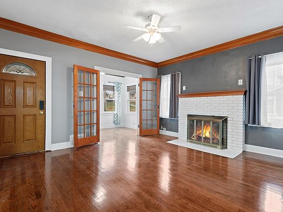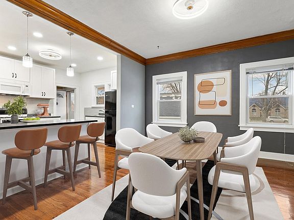 This beautifully updated bungalow blends timeless charm with modern conveniences, offering everything you need and more. Step onto the inviting front porch, the perfect spot to enjoy your morning coffee or unwind in the evening. Inside, the front foyer opens to gorgeous hardwood floors that flow throughout the home, complemented by crown molding and updated light fixtures that add a touch of elegance. The living room is a cozy retreat, centered around a classic wood-burning fireplace, while the formal dining room provides the ideal setting for hosting. The updated kitchen features shaker cabinets, ample storage, and a convenient breakfast bar - perfect for casual meals or entertaining. The bonus front room offers a bright and functional spot for a home office or playroom. The main level also boasts three generously sized bedrooms and a renovated bath. Downstairs, the partially finished basement expands your living space with a family room featuring a built-in bar, a storage room, and a laundry area. Outside, enjoy the private .39 acre lot that is fully fenced with a large patio and firepit - ideal for relaxing or entertaining. Parking is a breeze with the detached 3-car garage and large driveway. Conveniently located near shopping, dining, schools, parks, and more, this home has it all. A preferred lender offers a reduced interest rate for this listing. This home is in great shape but being sold as-is. Schedule your showing today and make this charming bungalow your own!